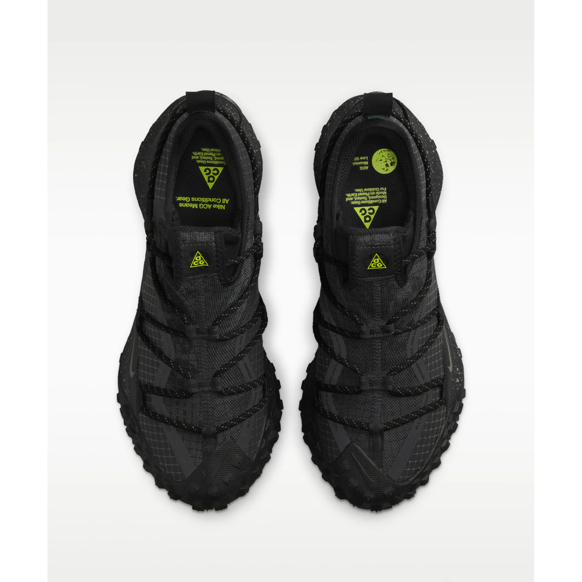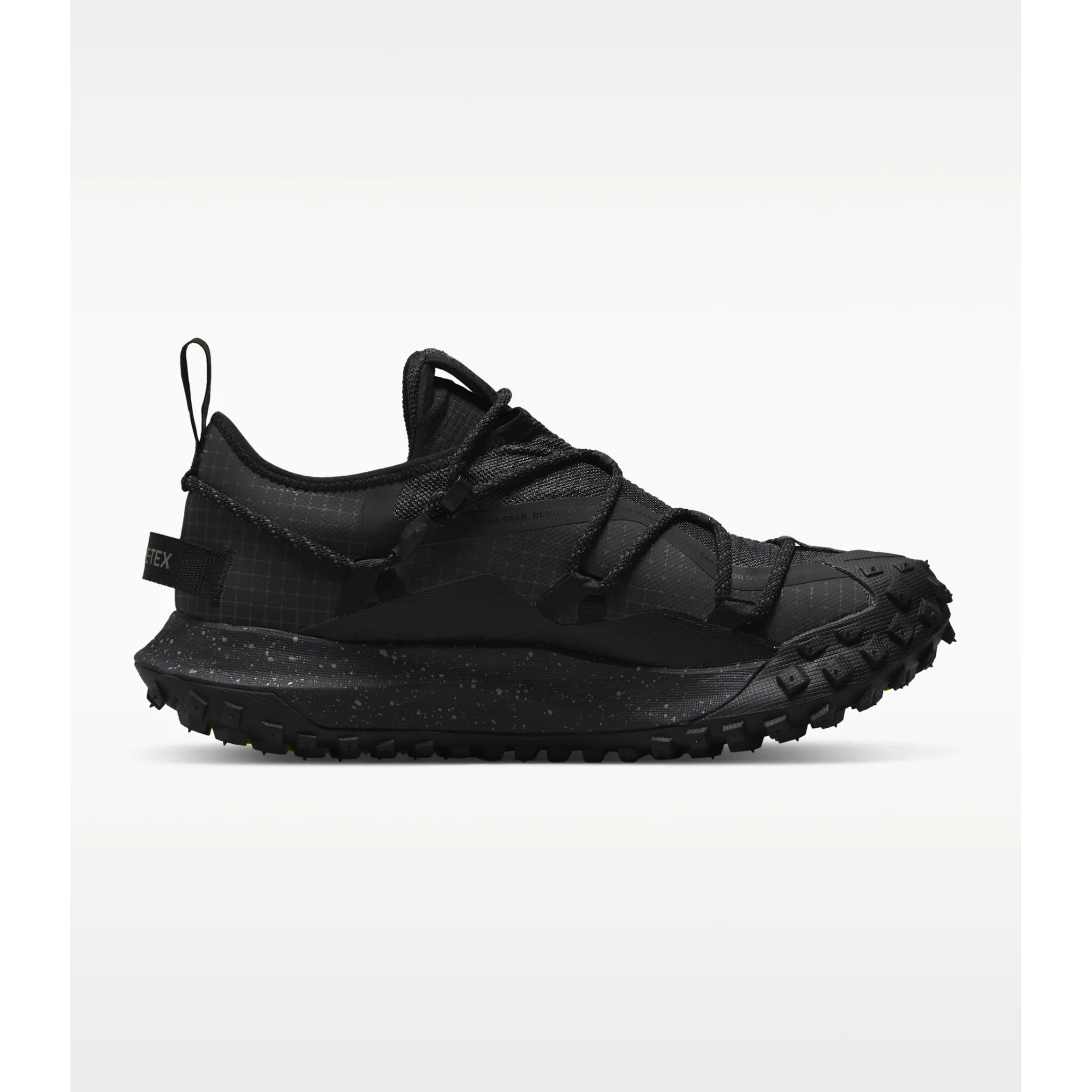 Then there’s the design. The ACG Mountain Fly Low GTX comes with a durable upper that looks sleek but feels built to last. From the image, the textured black upper and rope-style lacing system give the sneaker a tactical, premium feel. The pull tabs make it easy to wear, while the secure lace setup hugs your foot nicely. The chunky outsole is where the real attitude comes in. It has an aggressive traction pattern that gives this pair its wild, mountain-ready DNA. That sole is not just for looks — it helps with grip and stability, making every step feel strong and grounded.