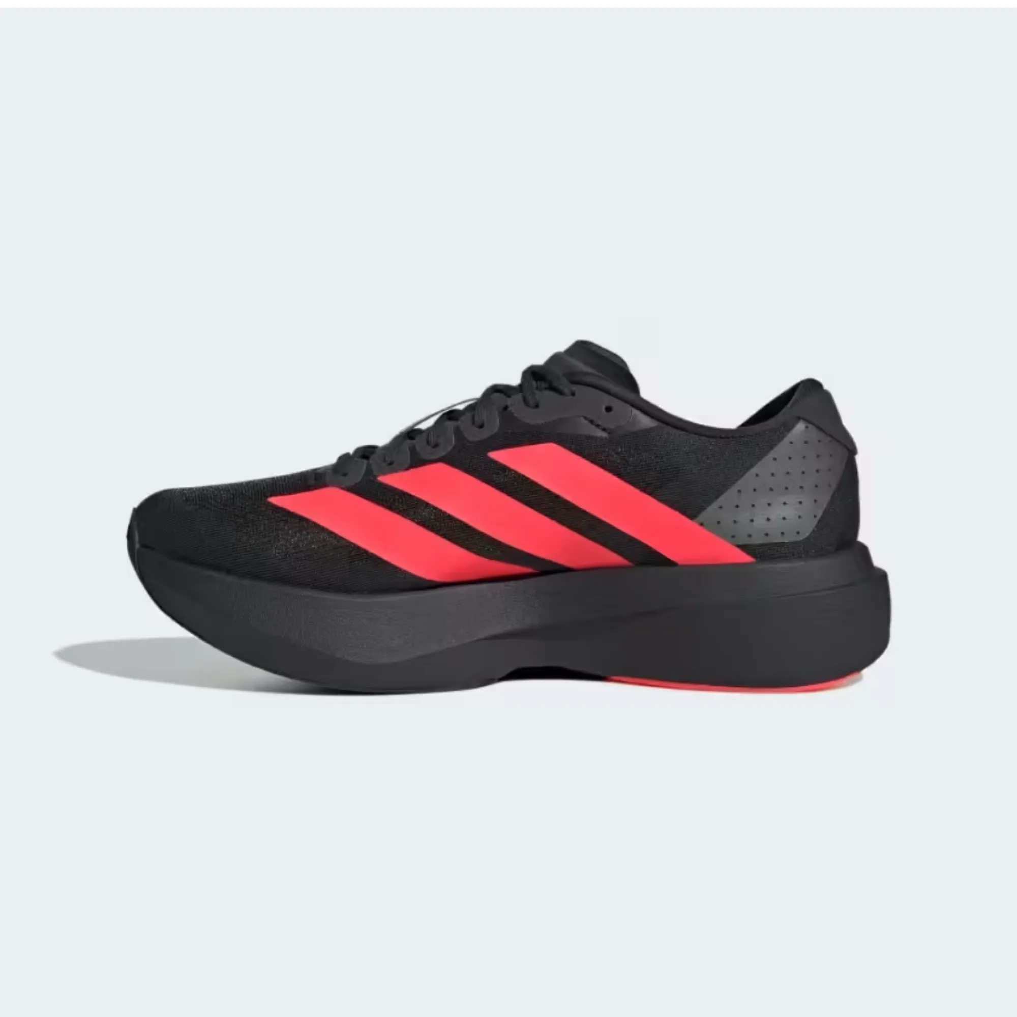 At first glance, the Adidas Adizero Evo SL already tells you it means business. The black upper gives it that clean, luxury feel that goes with almost anything in your wardrobe, while the bright red Adidas stripes hit hard and make the whole shoe pop instantly. It has that sporty, futuristic look that feels fast even when you are just standing still. Whether you’re wearing cargos, joggers, shorts, denim, or a clean two-piece fit, the Adidas Adizero Evo SL slides into your lifestyle easily. It’s the kind of sneaker that works for campus, casual link-ups, airport fits, gym flex, road trips, brunch, and even those days when you just want your shoes to do all the talking.