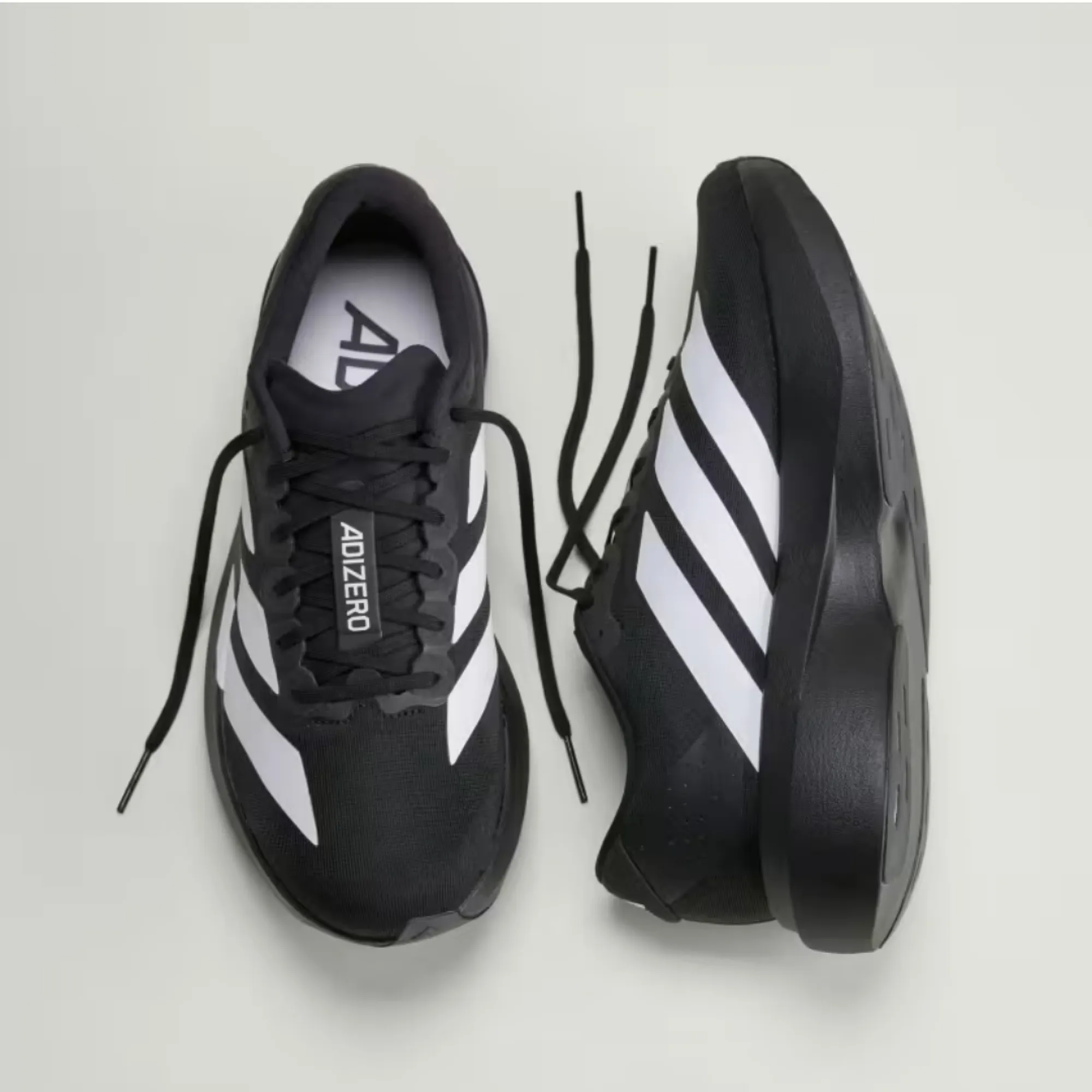 The first thing you’ll notice about the Adidas Adizero Evo SL is the clean, aerodynamic shape. It has that streamlined silhouette that looks fast even when you’re standing still. The black upper gives it a bold, versatile edge, while the big white Adidas stripes create a striking contrast that makes the sneaker pop instantly. It is simple, but not basic. Minimal, but still loud in the best way. That’s what makes the Adidas Adizero Evo SL special — it doesn’t need too much to make a serious statement.
