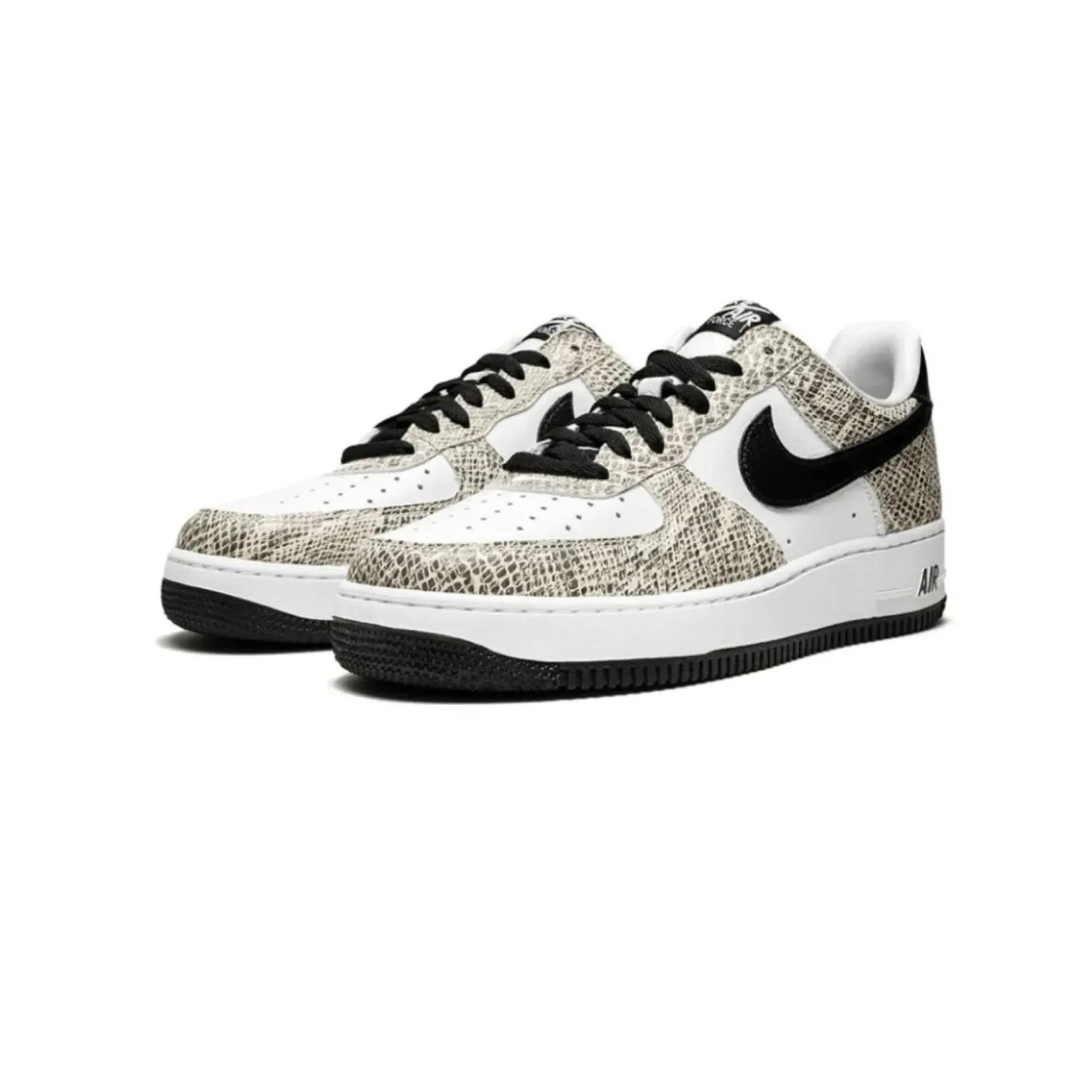 The Air Force 1 Low Cocoa Snake is not just a shoe—it’s a flex with history. You get crisp white panels layered with a textured cocoa‑snake print that feels premium and looks expensive without shouting. A sleek black Swoosh, black laces, and a black outsole ground the look, while the white midsole and “AIR” stamp keep it OG AF1. It’s the perfect balance of classic and exotic, making the Air Force 1 Low Cocoa Snake stand out in any crowd.
