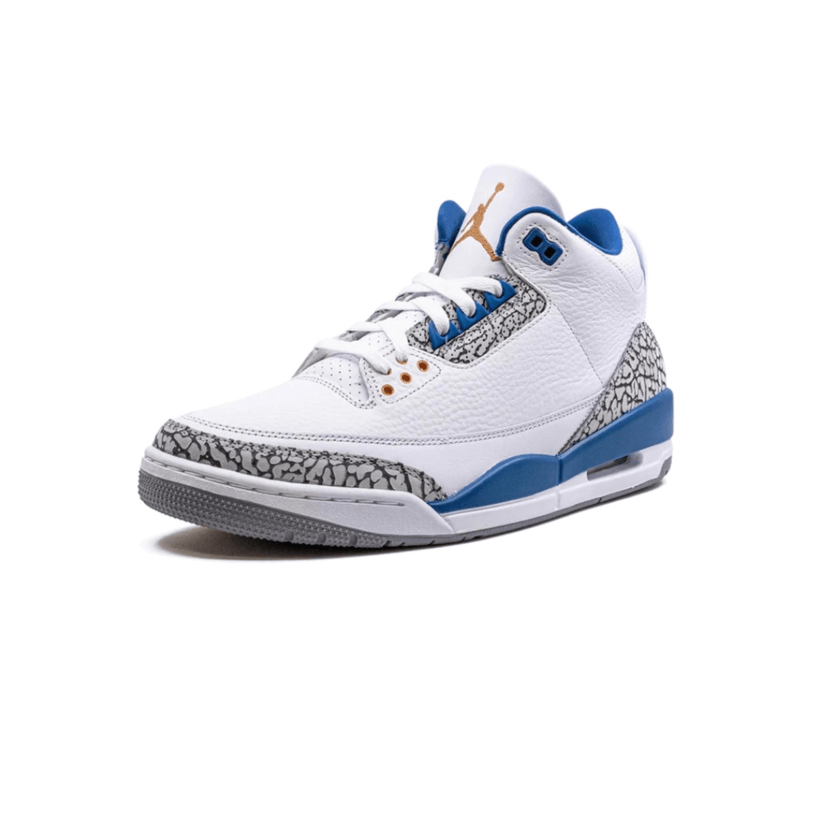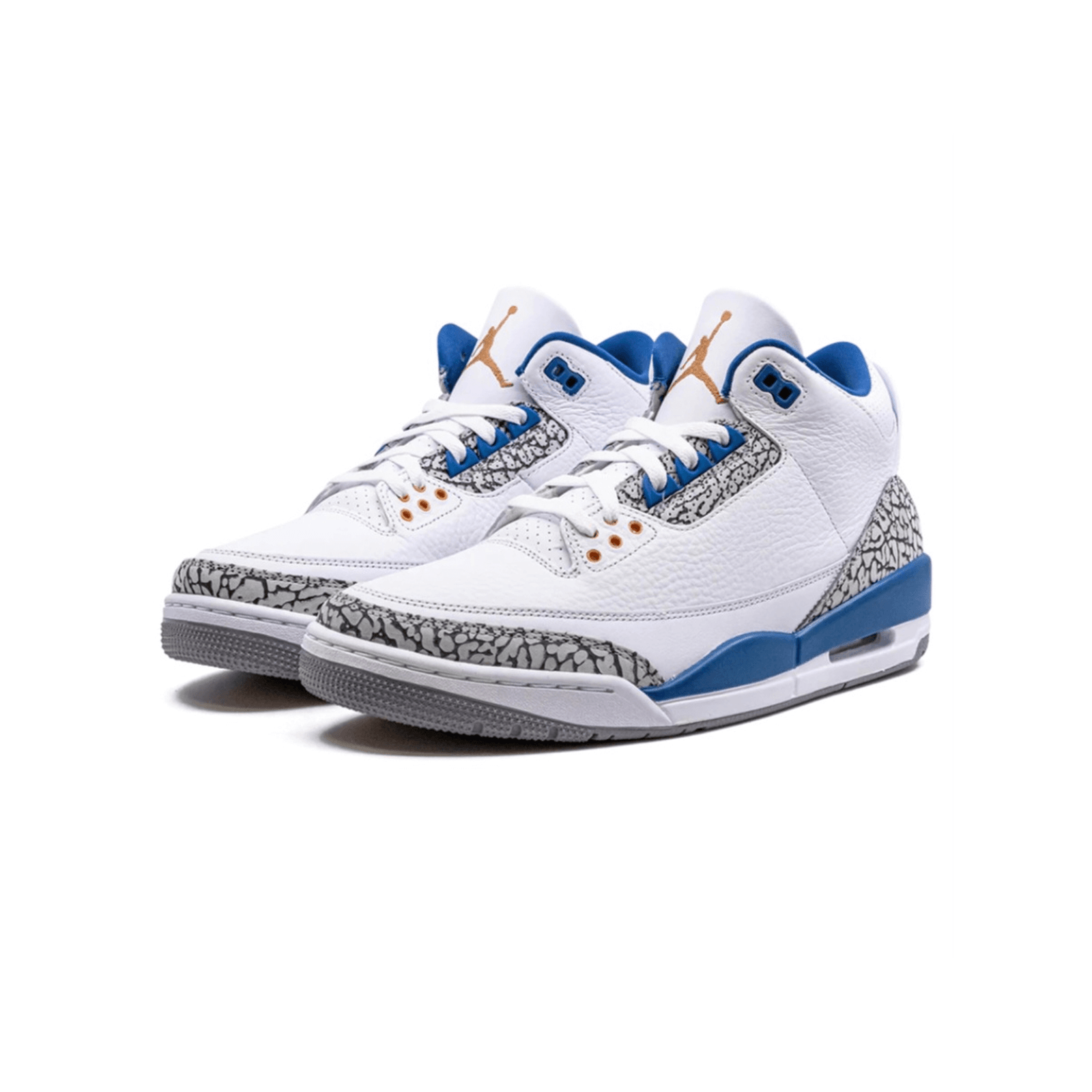 The Air Jordan 3 Retro Wizard is a true classic reborn — featuring a crisp white leather upper, smooth blue accents, and those iconic elephant-print panels that scream vintage Jordan DNA. It’s a nod to MJ’s Washington era, where experience met style, and legends stayed winning. Every detail hits hard — from the bronze Jumpman logo to the perfectly balanced design that keeps heads turning everywhere you go.