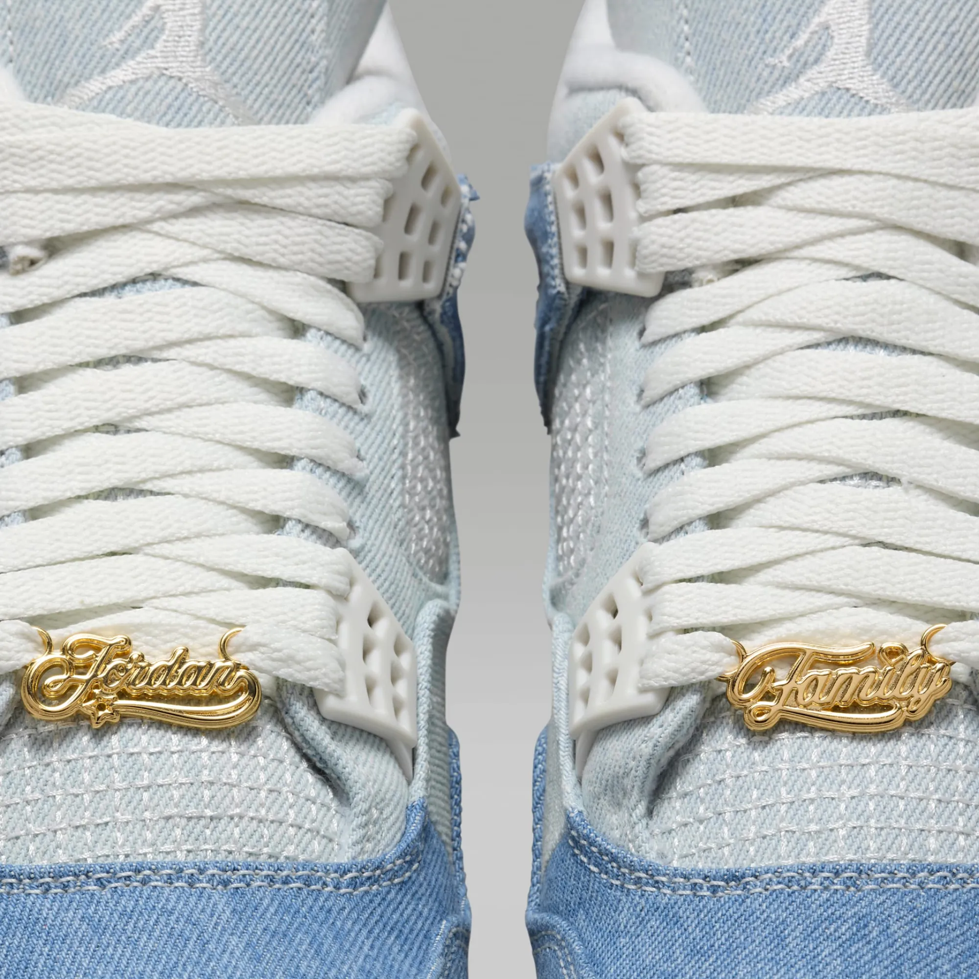 The Air Jordan 4 Retro TEX takes the classic Jordan 4 shape and remixes it with rugged textile and denim-style panels in soft sky blue and cool grey. Add creamy laces, clean white midsole, a gum outsole and shiny gold accents, and you’ve got a pair that looks like it was designed for fashion week but built for real streets from Lagos to Abuja.