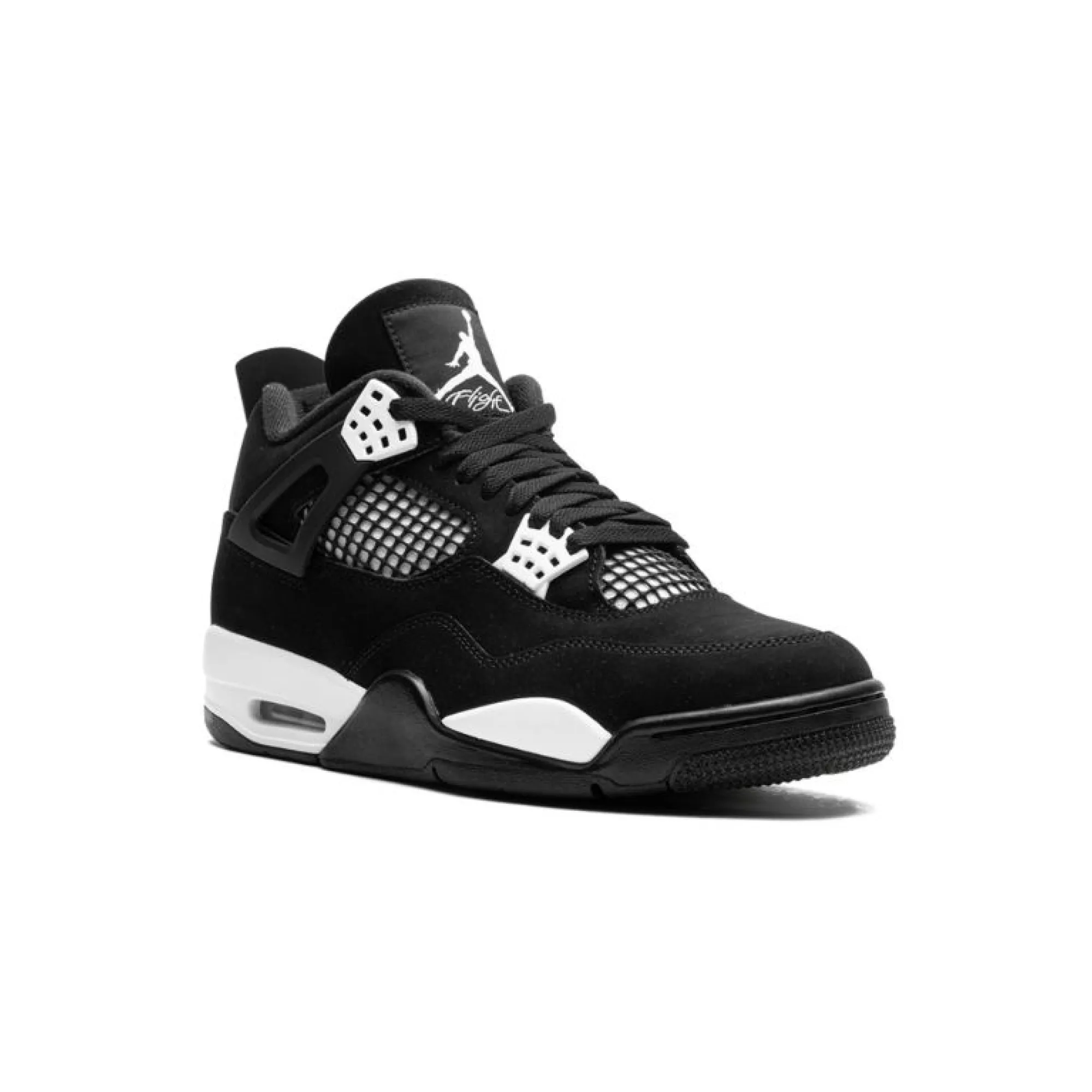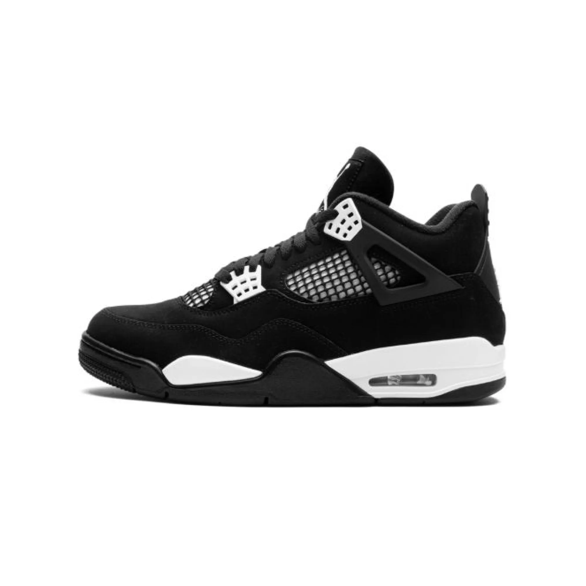 The Air Jordan 4 Retro White Thunder is not just another sneaker on the shelf. It is a statement piece. It carries that legendary Jordan energy, mixed with a clean black-and-white contrast that feels fresh, rich, and timeless. The all-black upper comes through with a smooth premium suede look that feels luxurious and soft, while the bright white details pop hard in all the right places. That contrast gives the shoe a strong, classy vibe that works with almost anything in your wardrobe. Whether you wear cargos, denim, shorts, stacked trousers, or a clean two-piece fit, the Air Jordan 4 Retro White Thunder knows how to finish the look.