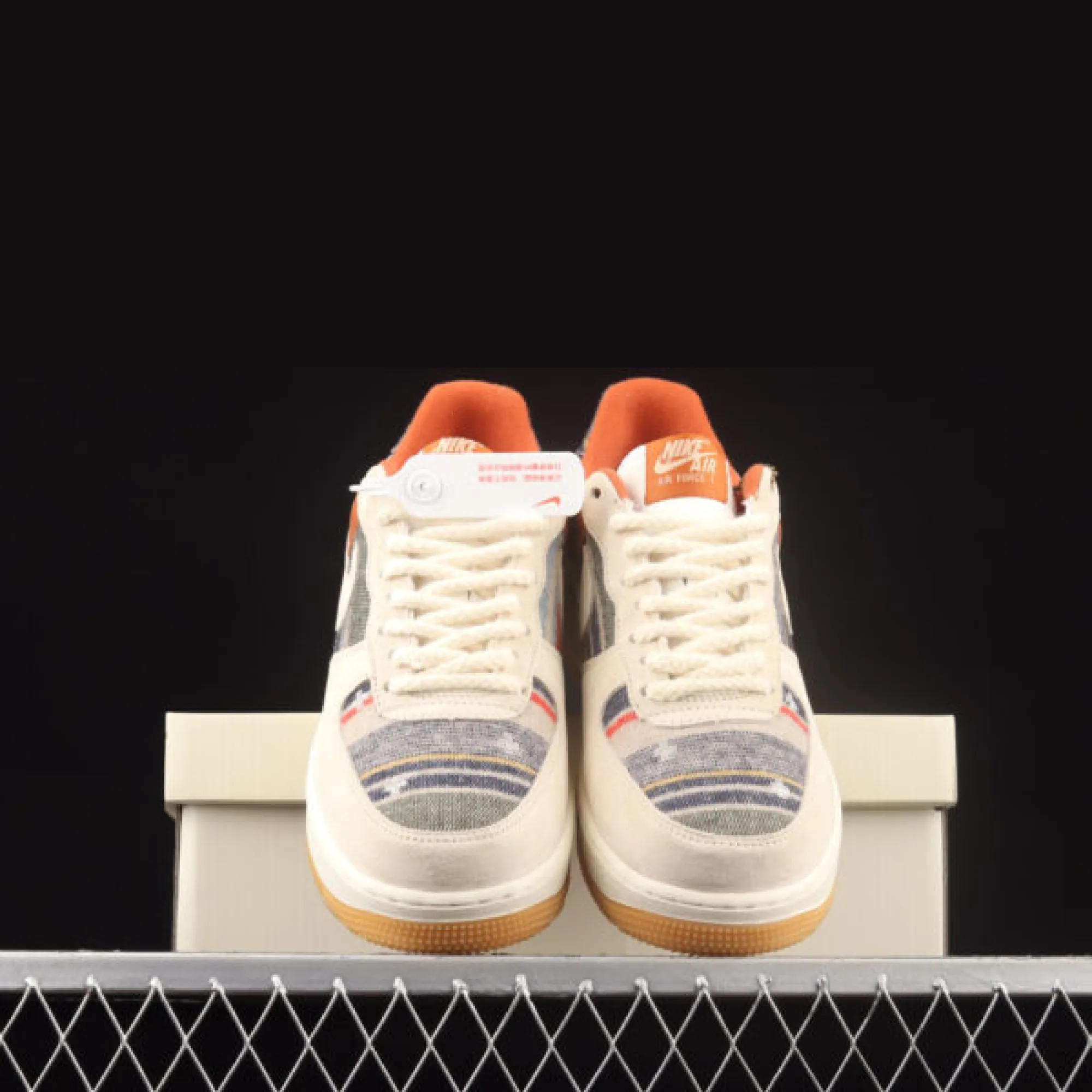 The first thing you notice is the mix of textures. This isn’t your regular all-white AF1. The Nike Air Force 1 07 Low Purse blends a soft, creamy upper with patterned fabric panels that look inspired by luxury bag materials. It gives that “designer” feel without doing too much. Then you catch the warm orange suede-like accents around the heel and collar area — that pop of colour makes the shoe look rich and bold, but still easy to wear every day. And let’s talk about the gum outsole. That honey-brown gum bottom is a cheat code for style. It makes the sneaker look grounded, premium, and slightly vintage — like something you found in a top sneaker store abroad. The full look of the Nike Air Force 1 07 Low Purse is clean, calm, and confident… then the details hit, and it becomes loud in the best way.