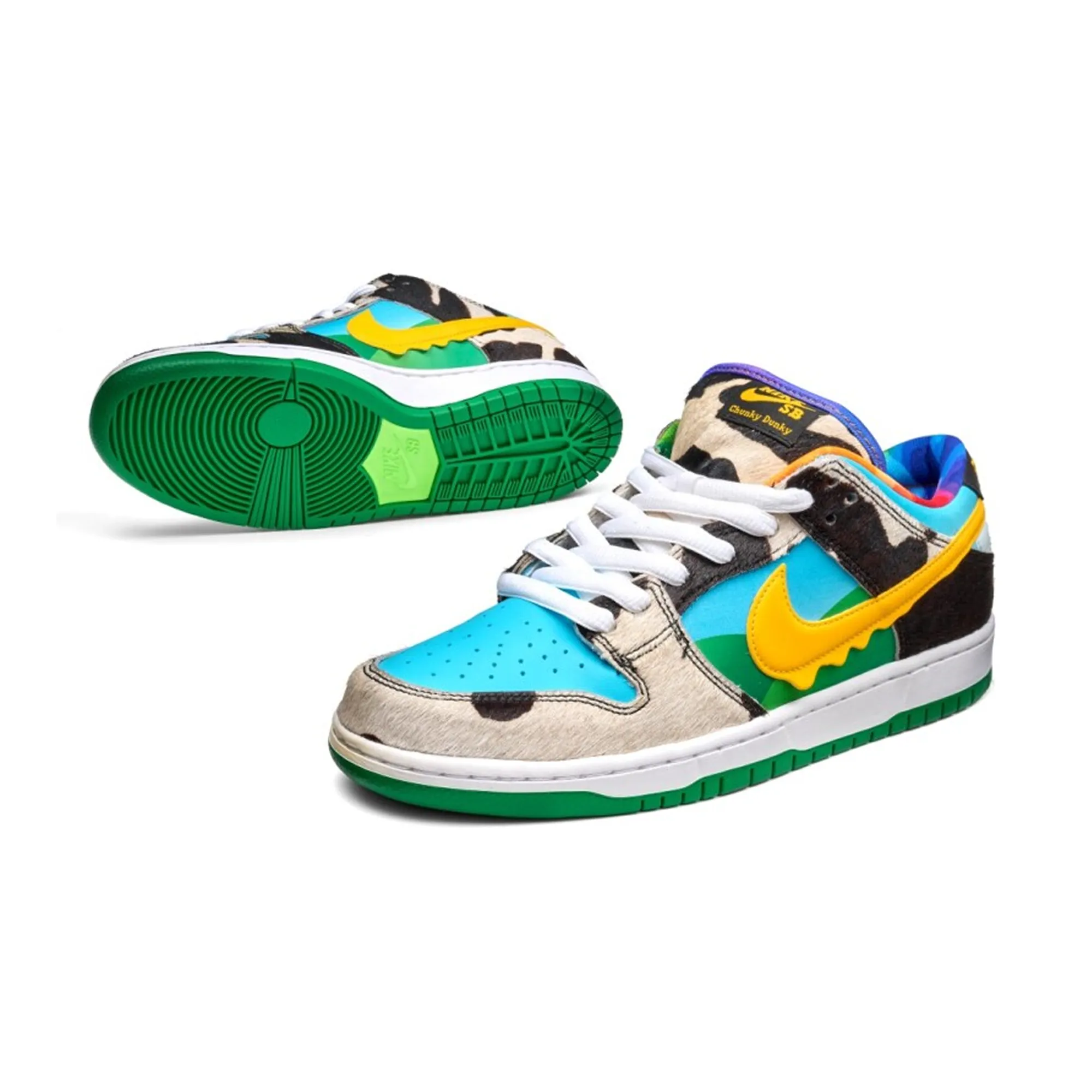 The Nike Dunk Low x Ben & Jerry’s Chunky Dunky is an official Nike SB collaboration with Ben & Jerry’s, built around the fun, colourful vibe the brand is known for. It released as a highly limited, super-hyped Nike SB Dunk drop, and it quickly became one of the most talked-about Dunks ever. That’s not hype talk — it’s documented sneaker history. References: Nike Dunk background (https://en.wikipedia.org/wiki/Nike_Dunk) and Ben & Jerry’s brand background (https://en.wikipedia.org/wiki/Ben_%26_Jerry%27s). For the collaboration coverage, SneakerNews also documented the “Chunky Dunky” Nike SB release (https://sneakernews.com/tag/ben-jerrys-nike-sb-dunk-low/).