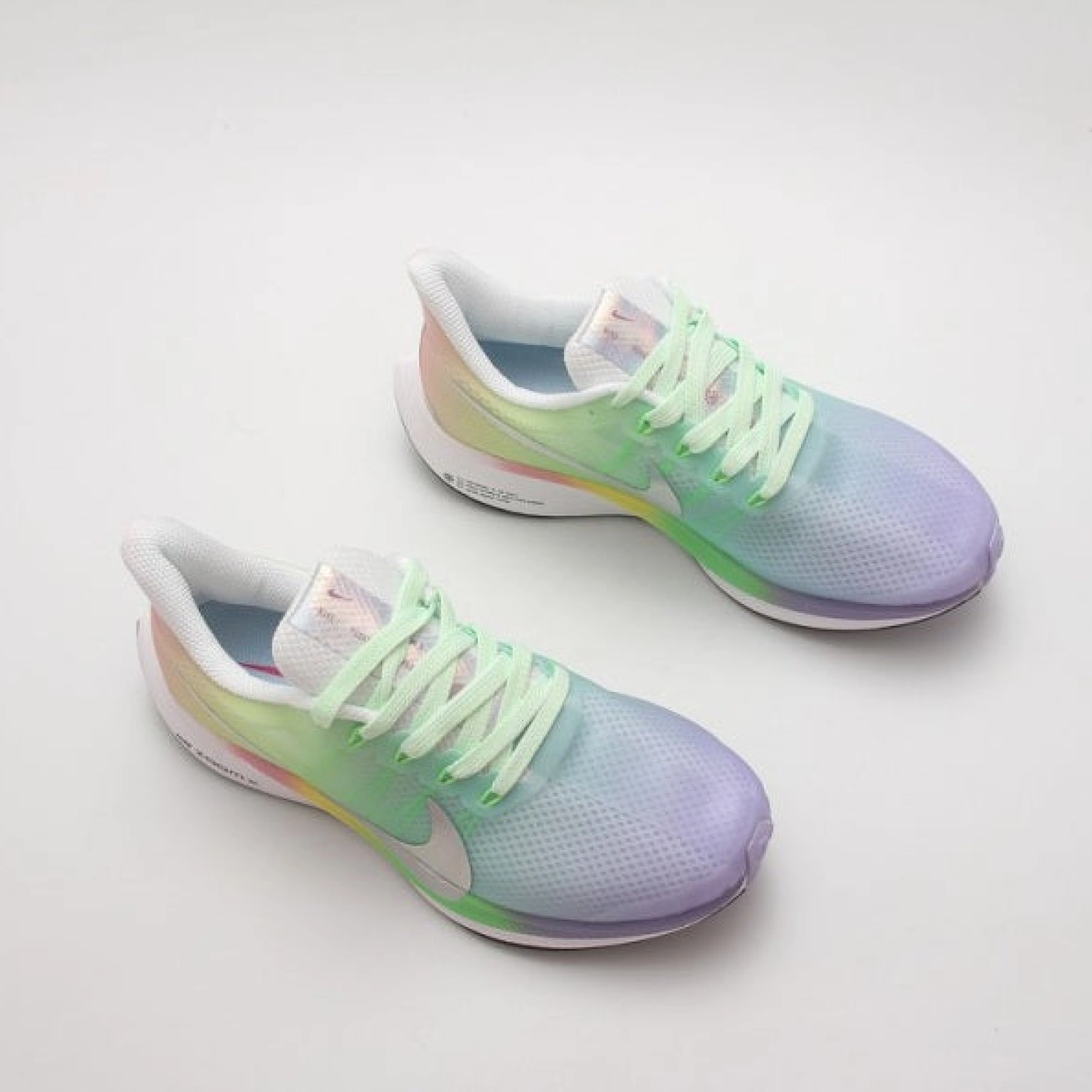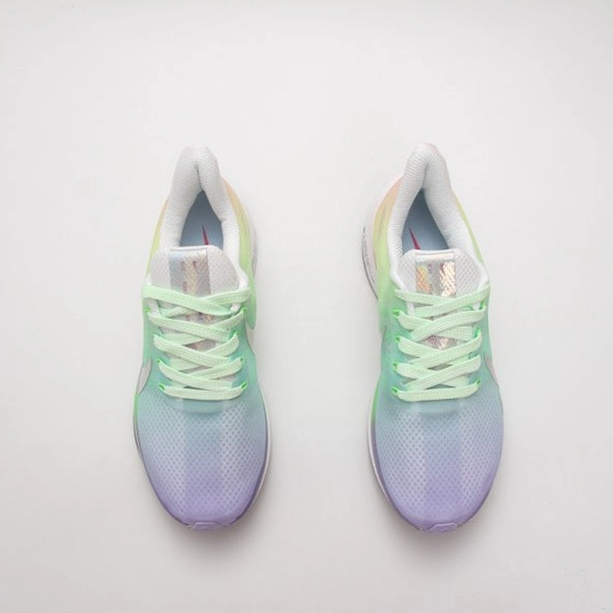 The Nike Zoom X Seven Colors blends performance and style in one clean package. A breathable mesh upper in soft mint‑to‑lavender gradients sits on responsive ZoomX foam, while that shimmering Swoosh and rainbow fade on the midsole keep eyes locked everywhere you go. It’s fast when you run, fresh when you chill, and comfy all day.