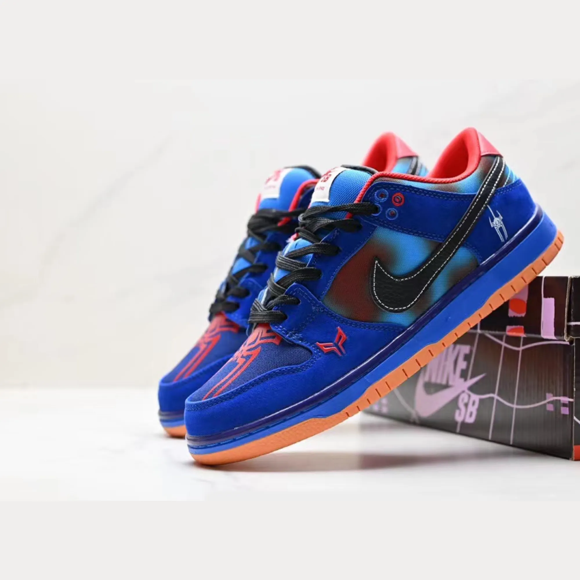 The moment you lace up the Spiderman x Nike Dunk Low SB, your outfit stops being “normal” and starts looking like a movie scene. This is that sneaker that makes people pause, look down, and ask: “Bro… what is that?” Because the colours are loud in a clean way, the details feel rare, and the vibe is pure superhero energy — but still premium streetwear.